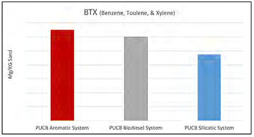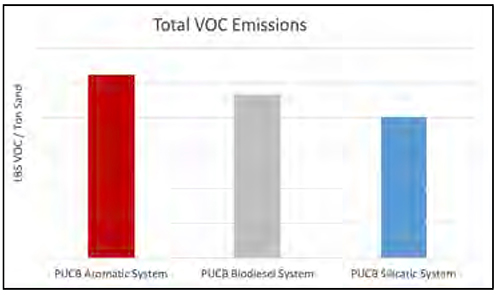There are PUCB systems that adopted the use of naphthalene depleted solvents that help to reduce BTX (benzene, toluene, and xylene) HAPs. The introduction of renewable products such as biodiesel solvents have also helped to reduce the VOC and HAP profile of the binder system.