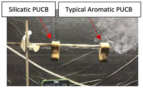 Fig. 1- Smoke comparison between Aromatic and Silicatic PUCB systems
