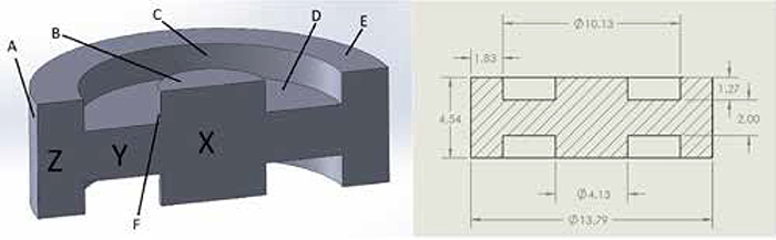 En base a los cálculos y suponiendo una única alimentación para esta pieza, podemos elegir una mazarota de alimentación con las siguientes consideraciones: