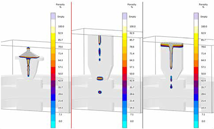 Aplicando algunos conceptos básicos de conocimiento sobre alimentación de una pieza con los parámetros de colado adecuados, puede alimentar piezas con alta posibilidad de éxito. Piezas grandes, de geometría compleja y aquellas con aleaciones inusuales pueden aun requerir software de simulación para diseñar la alimentación de la pieza. En esos casos, el costo y tiempo dedicados al trabajo de simulación pueden justificarse completamente.