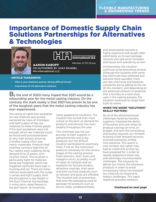As casting geometries become thinner in design and more complex, the influences from resin selection will place a more crucial role in providing a solid casting. An aluminum foundry was experiencing issues with a dendritic type shrinkage defect that was related to a recent change in a resin package, resulting in higher scrap rates from the shrink defect.