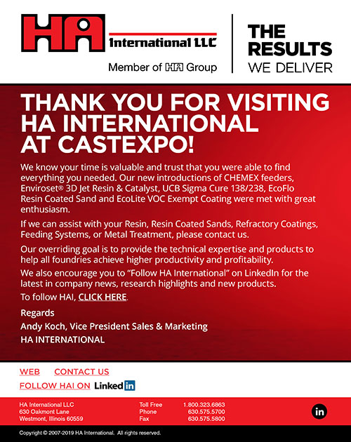HAI and its contract partners are currently proceeding with operations as an essential business and critical infrastructure supplier to the foundry industry. HAI's goal is to maintain its operations while also ensuring the safety and health of HAI's employees