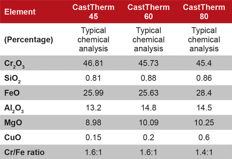 CastTherm foundry grade chromite is used for its unique properties, high thermal conductivity, high heat resistance, low thermal expansion, and high cost-effectiveness.